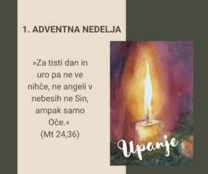 Apostol Pavel nas predrami: »Noč je skoraj minila, dan se je približal.« Advent je klic, da se prebudimo. Da odložimo navade, ki nas uspavajo, strahove, ki nas zavirajo in greh, ki zamegli pogled. Poživlja nas misel, da je Bog blizu – bliže, kot si mislimo. Dan se približuje. Kristus s svojo lučjo že pronica v našo noč.
