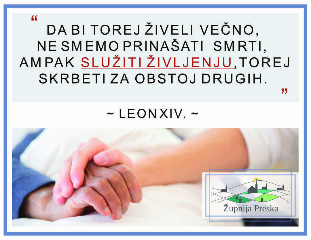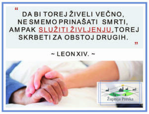 V tem mesecu novembru papež Leon vabi cel svet in tudi Slovenijo k molitvi za preprečevanje samomorov. V Sloveniji to delamo še na poseben način. Z iskreno hvaležnostjo se obračamo na vsakega izmed vas. Hvala vam, ker molite molitev za izpolnitev Božje volje v naši domovini.