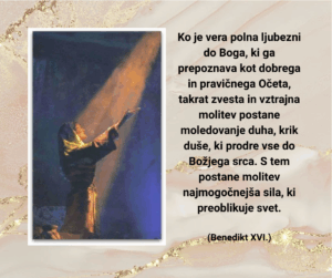 najina prošnja ne bi bila le klic po pomoči, ampak tudi izraz hvaležnosti za vse, kar že prejemava. Svoje skrbi, načrte in družino sva izročala v Božje varstvo ter z zaupanjem verjela, da naju Bog vodi po pravi poti.
